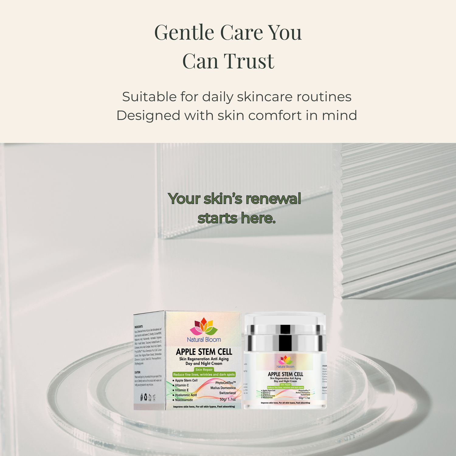 Powered by Apple Stem Cell Technology, it supports your skin’s natural renewal while staying gentle enough for everyday routines